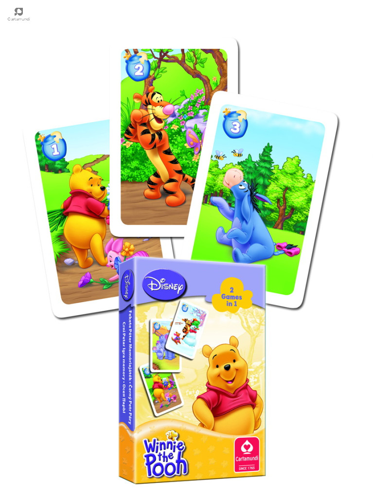 Memória és Fekete Péter játék, a lapokon Micimackó, Malacka, Füles és Tigris képeivel